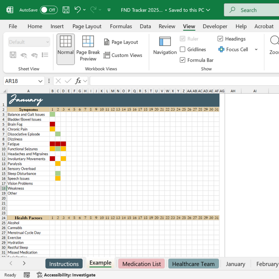 This Excel workbook comes with instructions, 12 months worth of trackers, a medication list, and healthcare team list.